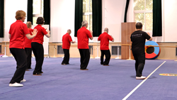 This led onto Yang Style Taijiquan Tao Lü Bafa Wubu (form work). Firstly, standing Tao Lü; with the feet at shoulder width while performing the eight primary hand techniques. The Yang Style Bagua Tao Lü was next, introducing the five directions (stepping) using the bagua trigram. We started at the Centre, which was represented by the Yin Yang symbol, then in turn the directions; north, south, east, west, northwest, southwest, northeast and finally southeast, expressing each of the first 8 primary techniques in each of these directions.